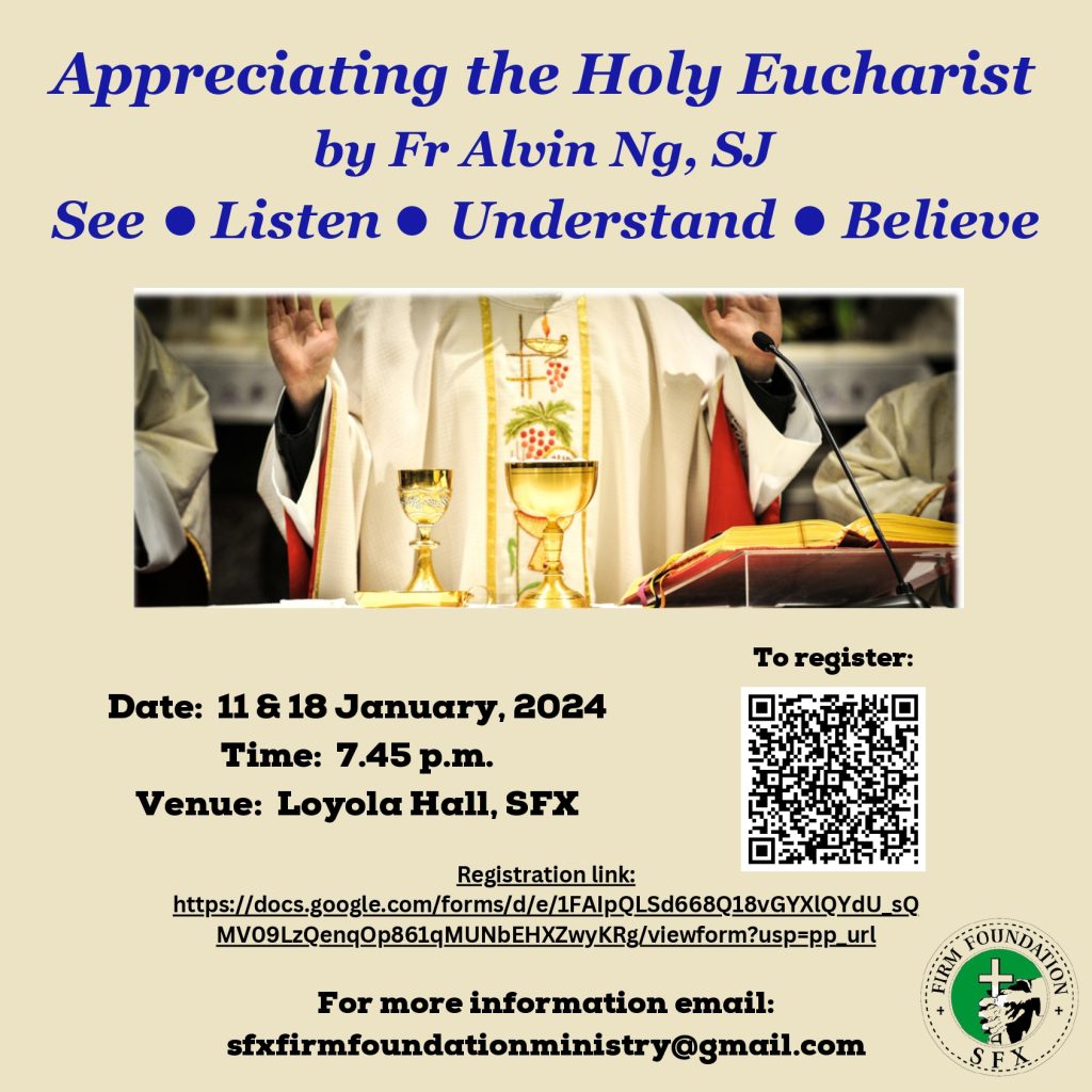 Join us for a profound session on “Appreciating the Holy Eucharist: See – Listen – Understand – Believe” by Fr Alvin Ng, SJ.