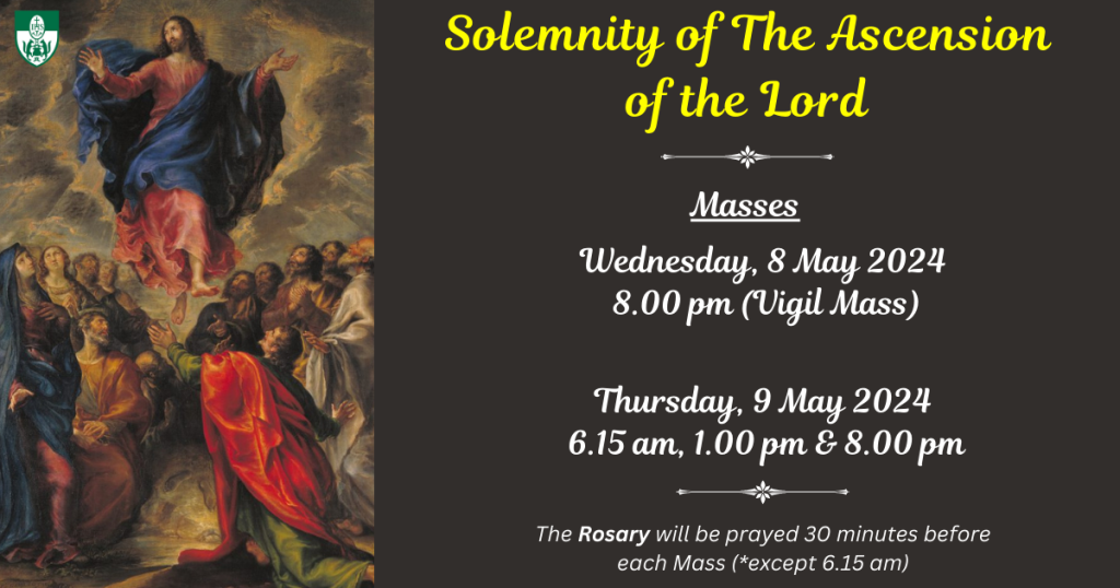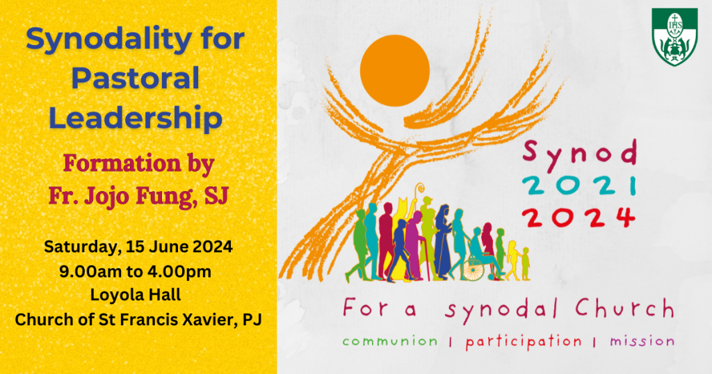 “Synodality for Parish Leadership” Formation Session led by Fr Jojo Fung, SJ on Saturday, 15 June 2024, 9.00 am at Loyola Hall. All ministry CCs and parish group leaders are expected to attend. If unable, kindly send a representative. Please register by Wednesday, 12 June 2024: https://forms.gle/JZt3azLaJkYJb8Wy8