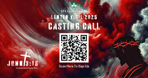 The SFX Youth Ministries proudly presents “John 3:16”, our first-ever immersive overnight Lenten Passion play! We’re bringing the story of Jesus’ Last Supper, & Passion, powerfully and uniquely, and we need YOU to be a part of it! 🎭