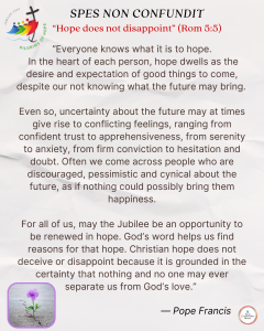 The Jubilee Indulgence is a concrete manifestation of God’s mercy, which goes beyond and transforms the boundaries of human justice. This treasury of grace entered human history in the witness of Jesus and the saints, and by living in communion with them our hope for our own forgiveness is strengthened and becomes a certainty. The Jubilee indulgence allows us to free our hearts from the weight of sin because the reparation due for our sins is given freely and abundantly.