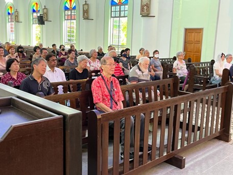 On 21 July 2023, the coach departed for St. Anne’s Minor Basilica from Petron Station, near SFX Church at 8.20am. During the bus journey, the pilgrims recited the rosary prayers and sang inspirational hymns. The bus made a brief stop at the Sg Buloh R&R for breakfast. All the pilgrims had a good rest on the bus before stopping at Taiping for lunch.